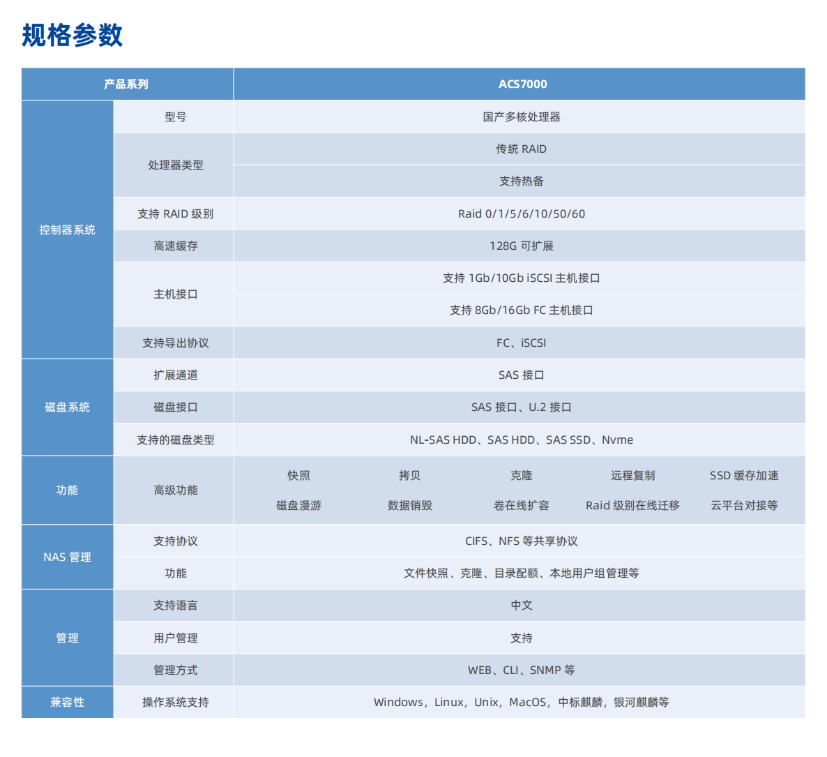 —关键部件的全国产化:关键部件全国产化,实现对存储系统硬件的安全可控 -